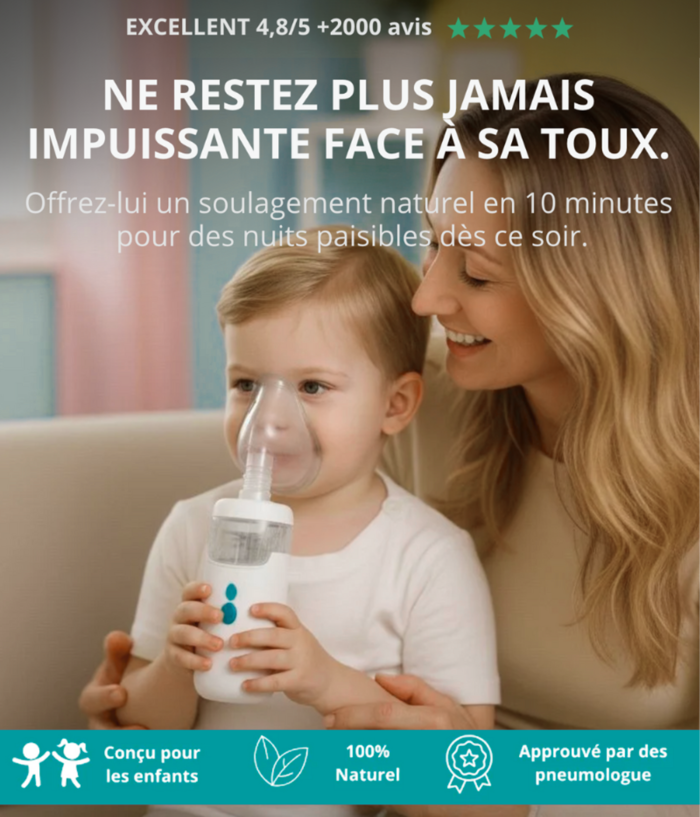 Grâce à sa technologie avancée, il diffuse une brume fine qui atteint facilement les bronches, permettant à votre enfant de recevoir son traitement en toute tranquillité, sans bruit, sans stress.